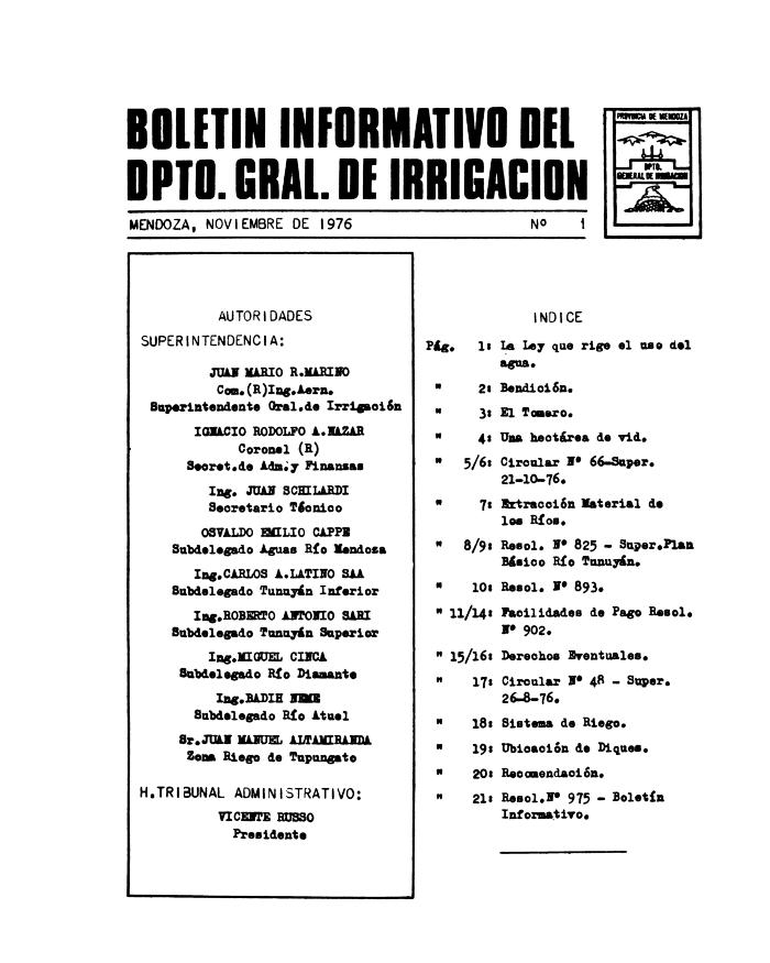 Boletín Informativo del Departamento General de Irrigación Tomo N°1 (Números 1 al 11)
